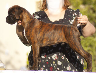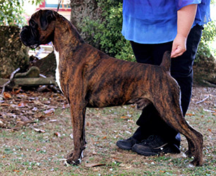 Date of Birth - 28th September 2013 When these puppies were born, I was adamant that I was not going to keep a boy. As they grew, Ascii was clearly special, but having two plain brindle boys already I wasn't keeping him. At 8 weeks old when we did the Puppy Puzzle on these babies it was the final straw and I just couldn't resist him! Pedigree of Ronin Oscar Mike Golf