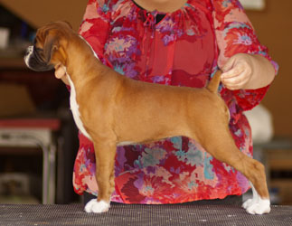 Date of Birth - 25th September 2013 Tango is now living a life of luxury in Queensland, Australia with Krystal Houldsworth. RESERVE BEST IN SHOW CBC 2015 21/03/15 - Reserve Best Bitch, BEST LIMIT IN SHOW - Central Boxer Club Show 2015 Another red in the house has been a long time coming, so Tango is very special indeed. At her fist championship show she won Best Baby Puppy of Group, but it is a hard road competing against Nick, Hannah, Ascii, and Rommie who are all the same age! Best Baby Puppy of Group - Kapi-Mana 2014 ![]()
